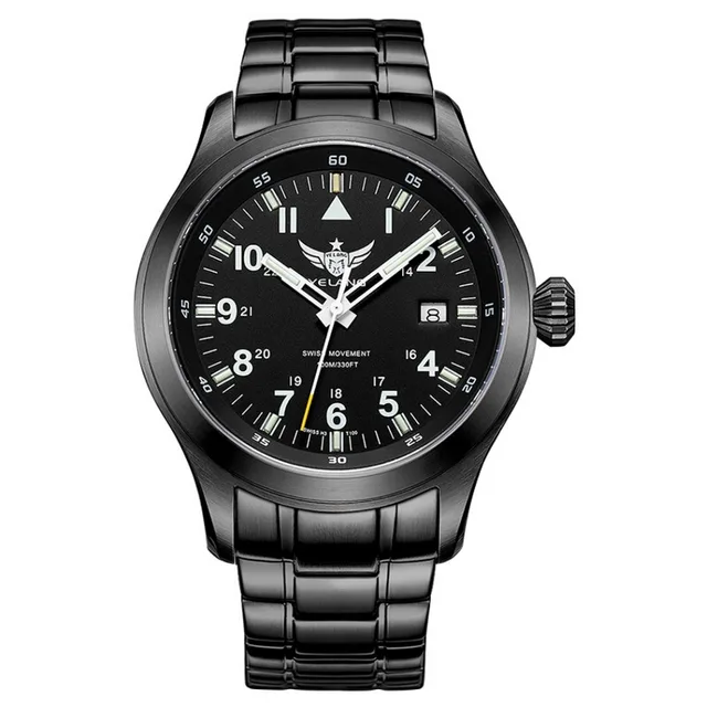Limited Price YELANG V1021 T100 Tritium Tubes+Flourescent Numbers 100m Waterproof Black Stainless Steel Strap Men with FREE Worldwide Shipping!